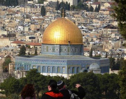 Gold Minorah overlooking the Temple Mount & the Mount of Olives